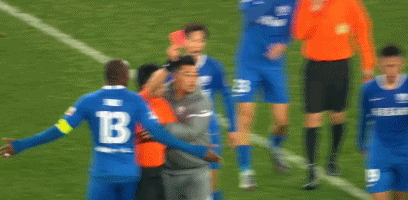 可以看到,桑戈尔先是击打了廖承坚的头部,后者愤怒的踢向前者,随后二人被队友拉开。随后主裁判向两名球员分别出示了红牌。