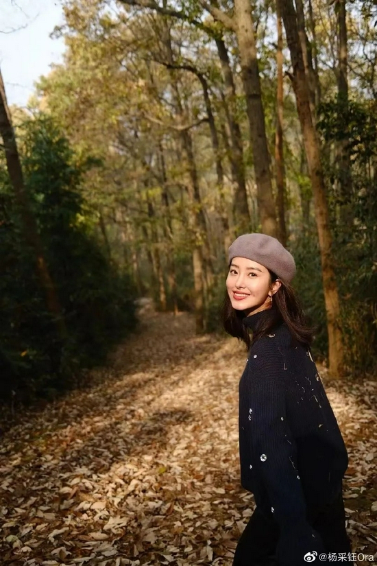 趁着阳光正好,也可以像杨采钰这样搭配一顶经典贝雷帽和朋友郊游,闪烁的光泽感元素稍稍点缀在毛衣之上,高领毛衣也能不无聊。