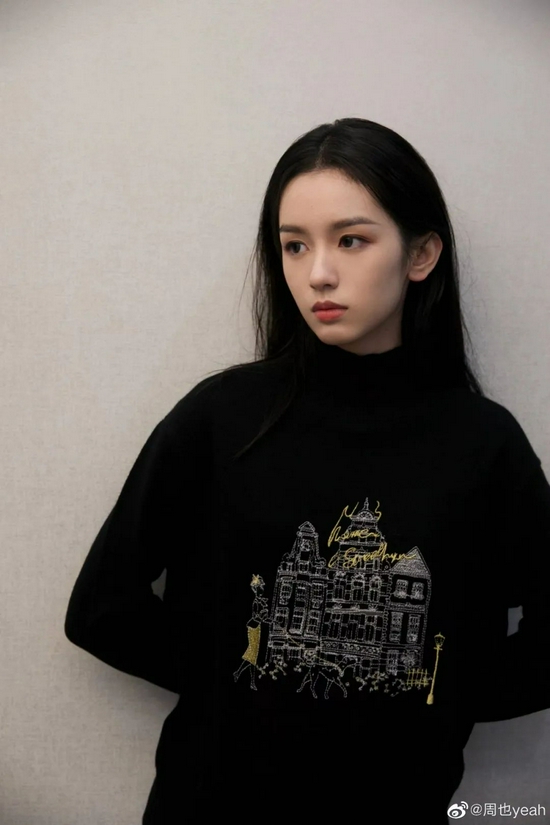 同样难掩俏皮的还有另一位妹妹,周也前不久也同大家分享了自己的新衣,黑色高领毛衣虽然不是什么新鲜款式,但刺绣印花图案,还是带来一丝童趣意味。