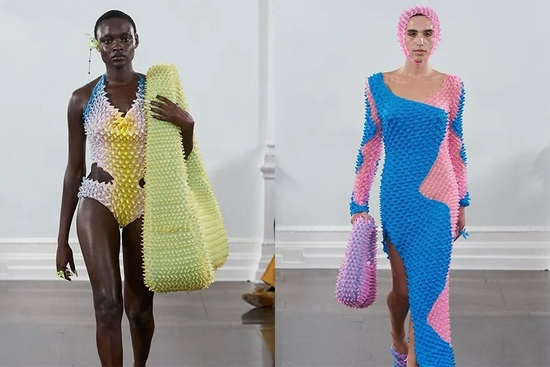除了Alexander Wang,品牌Chet Lo也推出了相类似的设计,掀起了一波狂野的热潮。以榴莲为灵感,创意十足,充满复古未来的元素。
