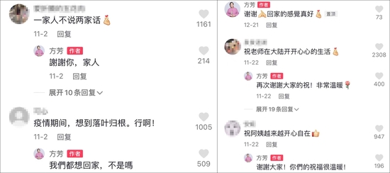 如今方芳终于圆梦,这两天也有越来越多的网友涌入她的视频评论区送上祝福,欢迎她回家,希望她在“家”里过得舒心快乐。