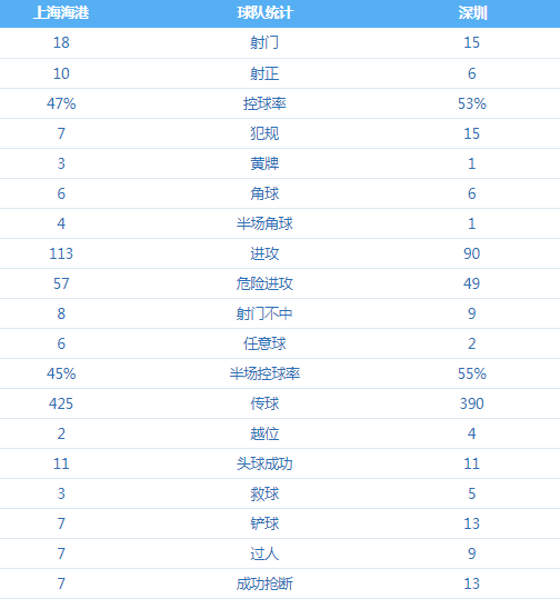 深圳队首发:1-张鹭、2-叶力江(U23)、6-裴帅、21-姜至鹏、26-元敏诚(71′8-戴伟浚)、10-金特罗(71′29-郜林)、14-张源(71′38-孙可)、16-郑达伦、28-李源一、7-阿奇姆彭、27-卡尔德克