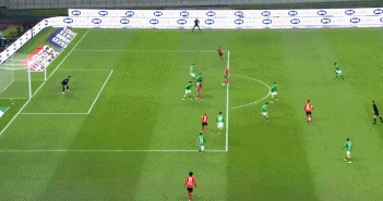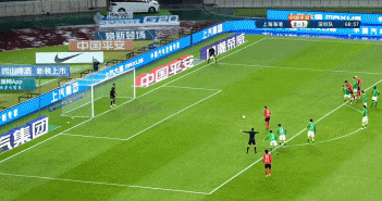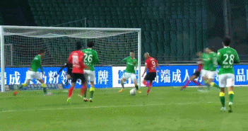 第9分钟,奥斯卡一脚妙传塞到前场右边路,李申圆反越位压上轻松传中,前点刘祝润跟进头槌破门,海港1-0领先深足。