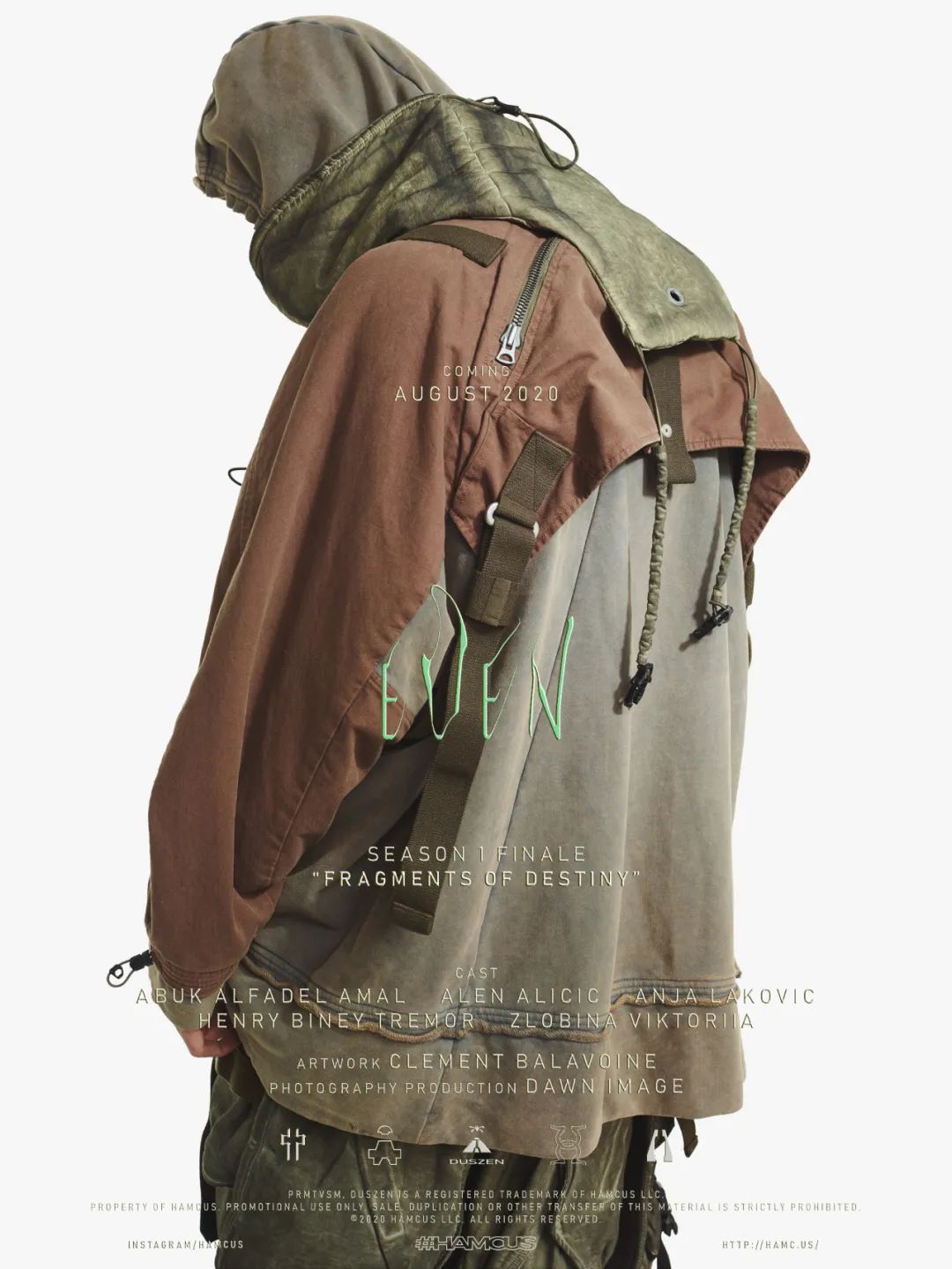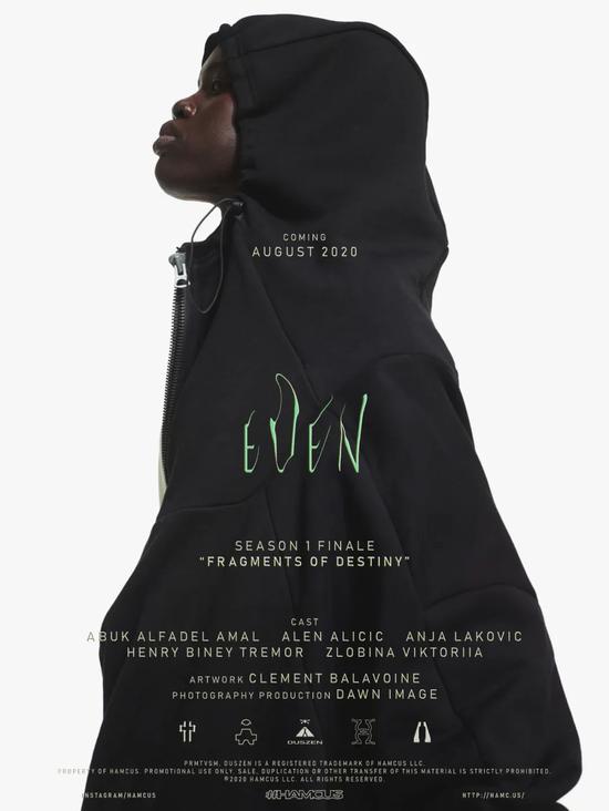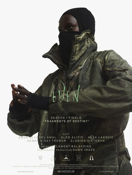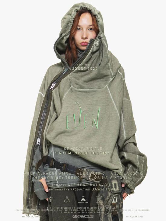 HAMCUS 2020AW利用象征性的元素去描述,更加突出地融合之前五个季度的产品,升级成最新也是最后这一季来画上一个句号。之后我们将会随着2021 SS进入下一个不同的空间。新空间的故事依旧存在于整个HAMCUS的宇宙中但是会触发新的剧情。HAMCUS未来的发展都会用这样的方式去剖析不同宇宙和空间之间的变化,尤其是在设计的服装单品上展现变化的氛围,整个故事的宇宙观相当之大。当人们看到有关于后末日,或者科技未来风格的作品时,他们很自然而然会联想到HAMCUS,这就是我们目前所背负的标签,这样的标签和认可需要我利用场景、包装、音效、视觉去完善,还原我脑海中的景象,当然HAMCUS不仅限于此。我们在上海举办的尘民世代POPUP算是综合了各方面的元素去讲好这个宇宙开篇的第一个故事,也算是之前六个系列的一个答卷。