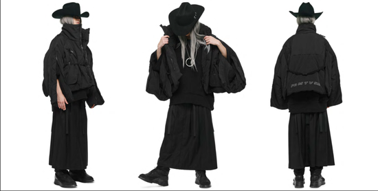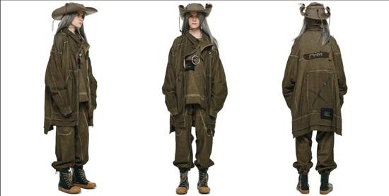 T:概念的东西我每次做完一季产品都会有一些关于背景故事的视觉艺术和文字介绍,告诉大家这个故事大纲处于一个怎样的世界环境和故事的剧情。好像19aw是赛博牛仔感觉的,加上里面有很多单品是突出这个牛仔感元素的。因此直观的感受给到的就是一个《星际牛仔》那种形象。虽然我的初衷并不是按照《星际牛仔》的灵感去做产品,而是融合了牛仔、海盗、赏金猎人的角色形象去创造。但是我也不会强烈地去给受众灌输我的概念,因为最主要还是能让他们感受到我的产品的做工、科技和质感,那样是最直观的,他们对产品感兴趣之后,再慢慢地去了解这个品牌背后的故事,了解每一季产品的创作世界观,会让他们不断地挖掘出惊喜。