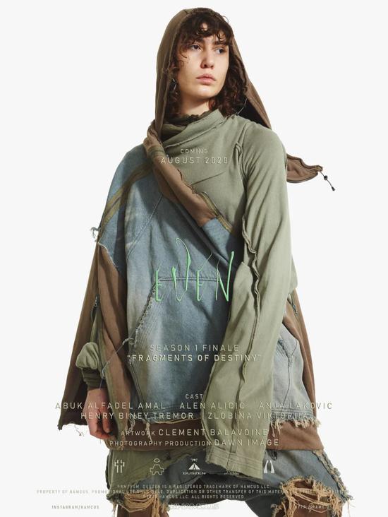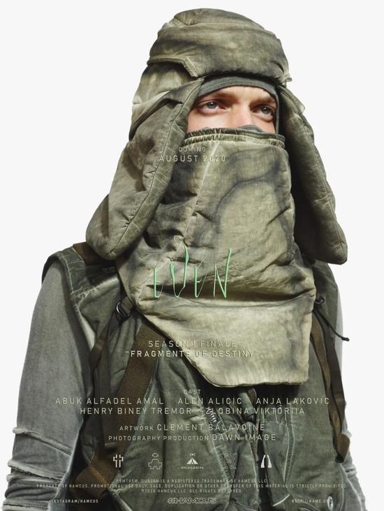 而整体HAMCUS剧本的架构从两年前开始一直到今天已经发布的2020AW总共六个季度的系列,算是组成了HAMCUS宇宙的第一块拼图。给我的感觉就像是游戏《波斯王子》一样,英雄救美需要经历重重关卡,才能达到最后的终点。而我们与HAMCUS也来到第一个宇宙的节点,我想象当中就是这个叫伊甸的地方,时空在这里交错,各地的人汇聚到了这个远古遗迹,山上有异色的金属和失落文明的废墟。