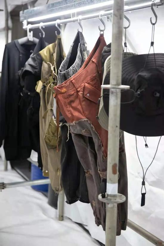 在来到HAMCUS的工作室之前,这个品牌都保持着巨大的神秘感。笔者了解到,在HAMCUS尚未面世之前,Tuff从事过批发女装的生意,他在千禧年初受到川久保玲把时尚与反战运动结合的启发,构思出一枚HAPPY的原子弹,之后将英文HAPPY ATOMIC浓缩在一起,形成了最早的名字HAMC。当Tuff开始做男装并碰巧前往美国参与TRADE SHOW,注册了一家公司以及域名使用了后缀US,便将起初的HAMC与US组合在一起,演变成了现在的HAMCUS。从名字上HAMCUS就已经具备了抽象与独特性,而这种营造出来的氛围与它打造产品的风格相契合。就在广州某个厂房区域,爱准得以窥见HAMCUS的品牌真面目,以及品牌背后的大脑Tuff Leung。