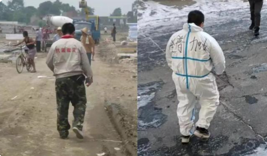 这份力量在坚定的背影里。同一个人,几乎一样的姿势,一张拍摄于汶川地震灾区,一张拍摄于大连战疫一线。横跨13年的同款背影,见证了这份坚守志愿服务的初心。