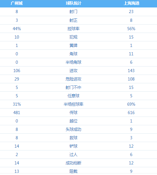 第15分钟,奥斯卡禁区外围左脚抽射被韩佳奇扑出,刘祝润补射又被韩佳奇挡了一下,穆伊再次补射得手,海港1-0领先广州城。