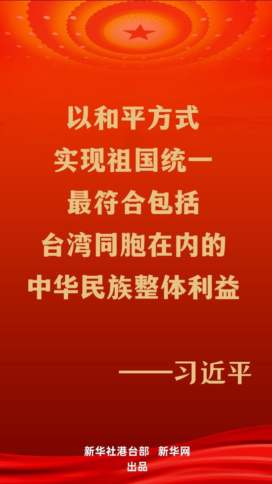 在纪念辛亥革命110周年大会上,习近平总书记发表重要讲话指出,以和平方式实现祖国统一,最符合包括台湾同胞在内的中华民族整体利益。我们坚持“和平统一、一国两制”的基本方针,坚持一个中国原则和“九二共识”,推动两岸关系和平发展。