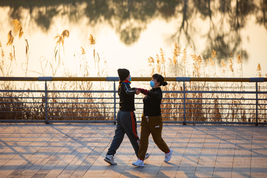 2022年1月1日,安徽省淮北市东湖公园,市民在晨练。王文 摄