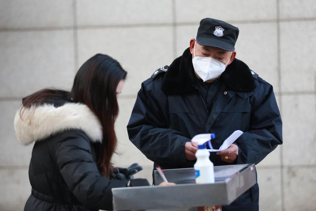 2022年1月1日,西安市浐灞生态区一小区,工作人员正在要求需要外出工作的保障性企业职工进行登记。新华网 王智超 摄