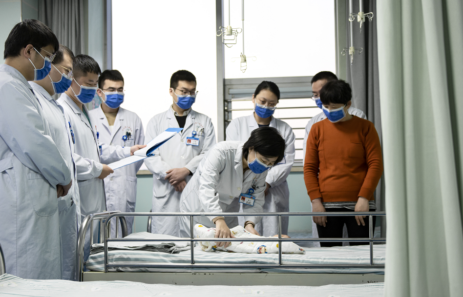 2022年1月1日早上,新年接续护“新生”,河北省儿童医院泌尿外科的医生在组织查房。赵士猛 摄