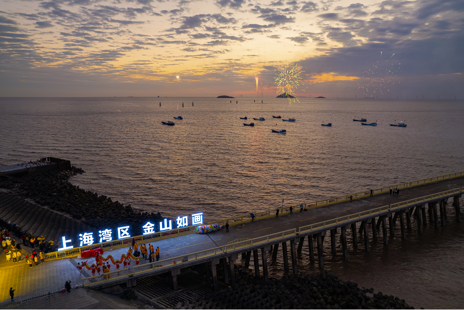 2022年1月1日,日出金山如画,上海湾区迎接新年第一缕阳光。新华网发 周尧 摄