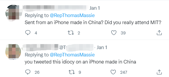 还有国外网民提醒他:老兄,你发推的苹果手机搞不好都是中国制造,“你书真是在麻省理工念的?”