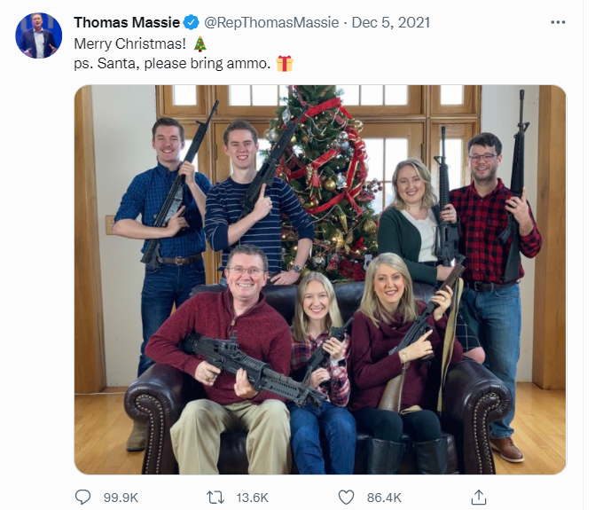 这位2021年12月上旬都因为全家持枪迎圣诞的照片被围攻的“Mr. No”,2021年的最后一天也没闲着。