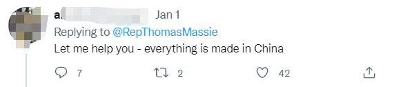 结果,隔着屏幕,不少美国网友闻到了酸味,热评都在劝他认清现实,“有什么问题吗?在美国很多能买到的东西都是中国制造的。”