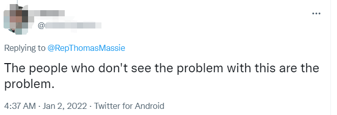 今年51岁的托马斯·马西是美国共和党籍政客,在麻省理工学院获得了电子工程的本科学位和机械工程的硕士学位,自2012年以来,他一直担任肯塔基州第4选区的众议员。马西被外界看作是一个“自由主义共和党人”,喜欢“唱反调”的他还有个“Mr. No”的外号,曾投票反对塑料枪禁令和大麻消费者购枪禁令。