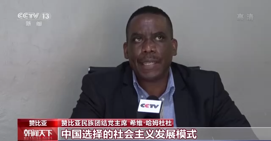 赞比亚民族团结党主席 希维·哈姆杜杜:中国选择的社会主义发展模式是行之有效的,我们对此表示尊敬和钦佩,同时我们能从中学到很多。