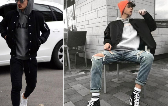 飞行员夹克内搭连帽卫衣可以穿出复古休闲感,保暖同时不至于臃肿。如果觉得整套搭配过于单调,可以通过内搭的印花字母或者选择一件亮眼配饰来调整适配。