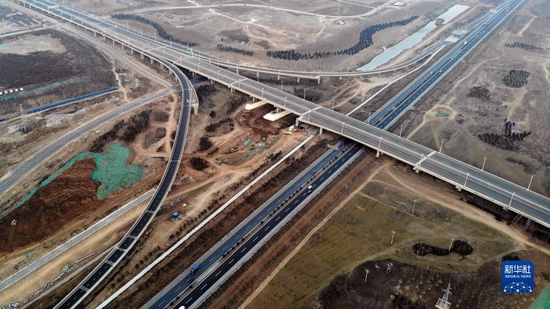 这是1月5日拍摄的京雄高速与津雄高速交汇处(无人机照片)。新华社记者 骆学峰 摄