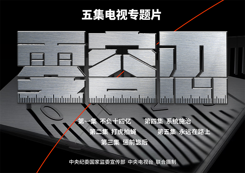 专题片共分五集,分别为《不负十四亿》、《打虎拍蝇》、《惩前毖后》、《系统施治》、《永远在路上》,选取16个案例,采访纪检监察干部、有关审查调查对象及涉案人员、干部群众140多人,生动讲述全面从严治党、推进反腐败斗争的故事,敬请关注。