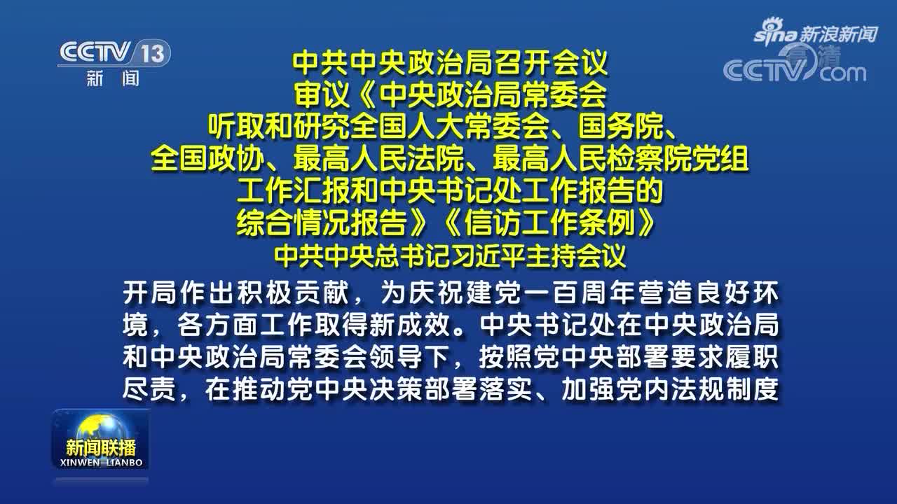 原标题:中共中央政治局召开会议 审议《中央政治局常委会听取和研究全国人大常委会、国务院、全国政协、最高人民法院、最高人民检察院党组工作汇报和中央书记处工作报告的综合情况报告》《信访工作条例》 中共中央总书记习近平主持会议