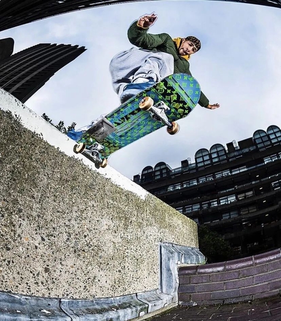 而之后在Virgil的牵线下,LV首次宣布签约滑手Lucien Clarke,并赋予他极高的自由度去完成Clarke与LV首个合作系列以及一款签名滑板鞋。