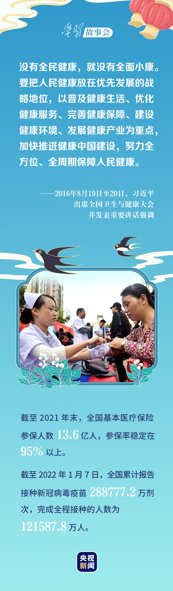 党的十八大以来,以习近平同志为核心的党中央始终坚持人民至上,从努力实现全方位全周期保障人民健康,到构建起强大的公共卫生体系,一步步兑现让人民群众“病有所医”的民生承诺。