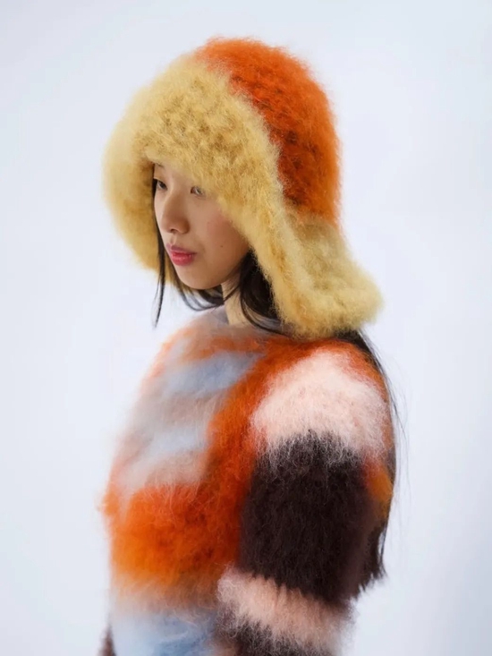 当然,面对马海毛‘风头正劲’的时期,品牌们在推出服饰系列之余,也没放过围巾、帽子等配饰单品。