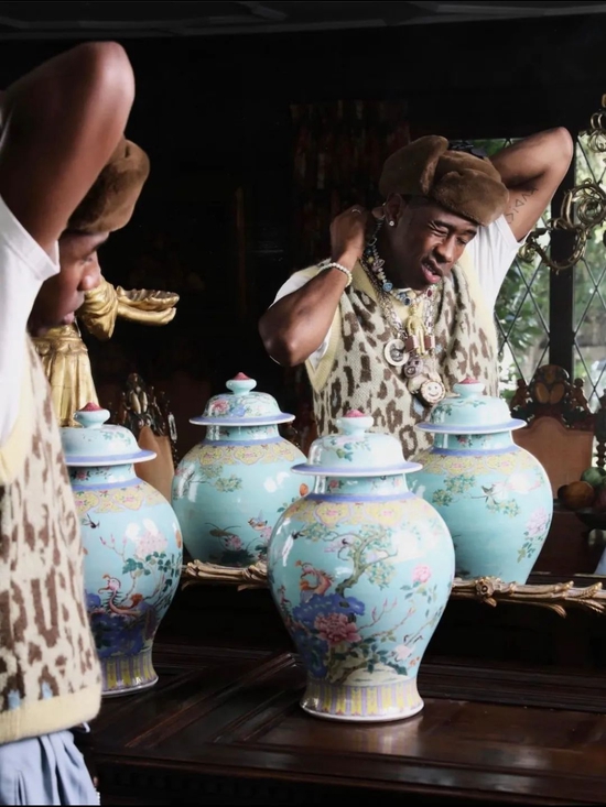 Tyler, The Creator 可以说是马海毛材质的忠实粉丝,曾在自家品牌 Golf Wang 推出过几件马海毛单品。无论是与 Lacoste 合作的粉色开衫款或是豹纹背心毛衣,都显得玩趣感十足。