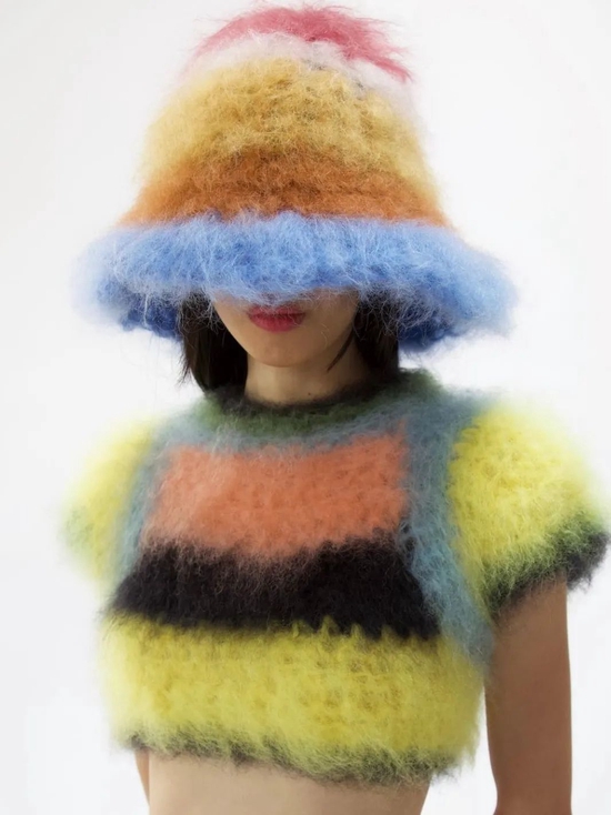 新晋品牌 NONG RAK 同样采用马海毛元素打造了一系列无性别服饰与配饰,为落实品牌永续环保的理念,NONG RAK 透过采购复古衣着、滞销品及二手天然纤维纱线的方法制作衣服。宛若软绵绵的云朵般,可爱至极。