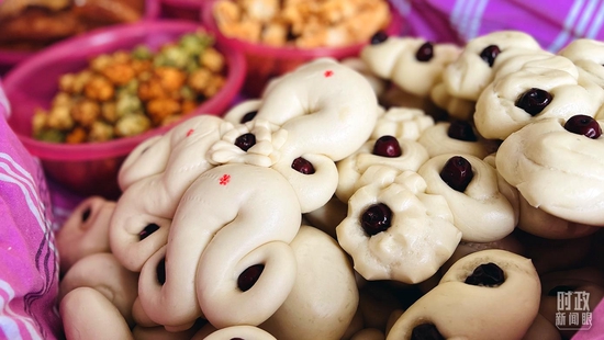 △老虎造型的年馍表情生动,色彩鲜艳。(总台央视记者王冰拍摄)