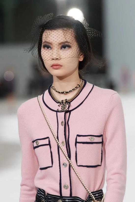 当然,她最让人印象深刻的2021年春夏时装周的香奈儿 CHANEL 大秀,当时她身穿香奈儿 CHANEL 的高级定制款粉色针织衫,在秀场上脚步轻盈眼神坚毅气质高贵,独特的外形搭配舞台的绚丽的灯光,流光溢彩,展现了她全方位的时尚与美丽。