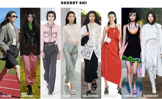 Sherry Shi 身材比例完美堪称顶尖、面容冷酷五官清秀、笑起来富有亲和力和感染力,凶起来也展现了时尚圈所追捧的犀利眼神,可塑性很强,也因此在时尚圈声名鹊起。