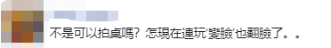 蔡英文早在2016年曾宣称,年轻人别怕跟“政府”沟通,如果“政府”没听见,你可以拍桌子。有网友想到蔡英文这番话,称“不是可以拍桌吗?怎现在连玩‘变脸’也翻脸了。”