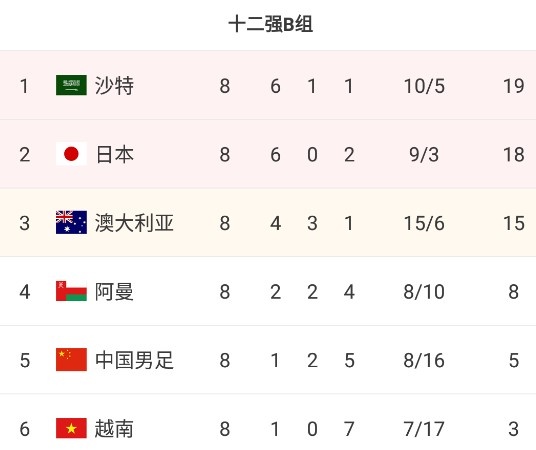世预赛12强赛第8轮,澳大利亚在两度领先的情况下,遭阿曼2-2绝平,澳大利亚仍排名小组第三,由于本轮日本队2-0战胜了沙特,因此澳大利亚已落后第二名日本3分。
