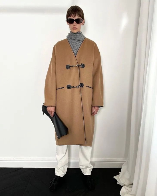 杨采钰还很会买,比如丝巾、大衣都是来自主打性冷淡风的瑞典品牌Toteme,剪裁和版型都以突出气质为主。