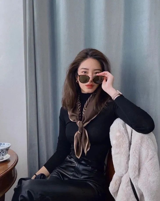 杨采钰喜欢把丝巾随性一搭,看似轻松其实是“精心设计过的耶”。一条丝巾最好的点睛方式是和身上的色彩有火花碰撞,比如小面积亮色系的呼应,或是大面积基础色的顺色搭配。