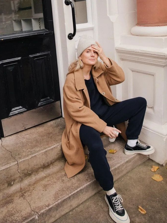 大衣常常给人一种温婉知性的感觉,如果内搭运动套装就能完全打破这种刻板印象。