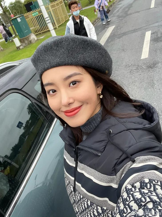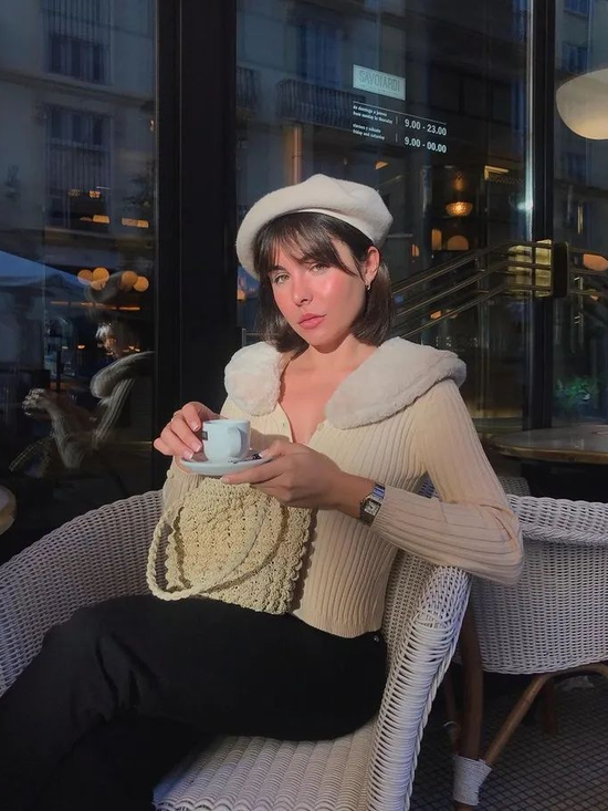 杨采钰可是贝雷帽的高级玩家,略带毛绒的质感和她的大衣仿佛浑然天成,20世纪复古名伶内味儿一下子就有了。