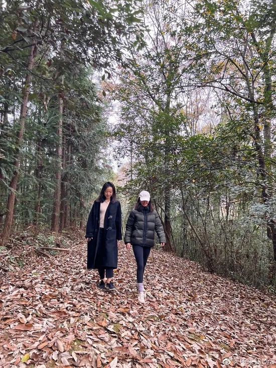 虽然是同款外套,但杨采钰和朋友在视觉上给人的最大区别是在精致度上——差些小配饰!
