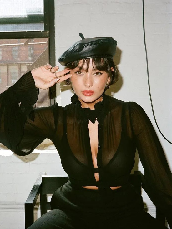 很多人觉得贝雷帽挑人,实际上它在帽子里的适配度蛮高的,因为它的戴法很多。如果是本身比较小的脸,可以尝试把帽子往后拽一拽;下颌线比较宽的脸型可以歪着戴,来平衡脸部重心。