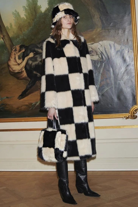 外套来自瑞典品牌Stand Studio,是设计师Nellie Kamras在2014年成立的奢侈品牌。品牌采用各种优质小羊皮、小牛皮、羊毛、皮草和人造皮毛打造绚烂的少女毛毛世界,浓厚的法式设计虽然廓形十足却也保持优雅,亮眼不落俗套的典范。