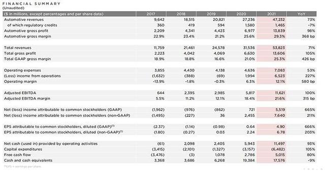特斯拉2021年全年财务总结(数据来源:特斯拉官方)。