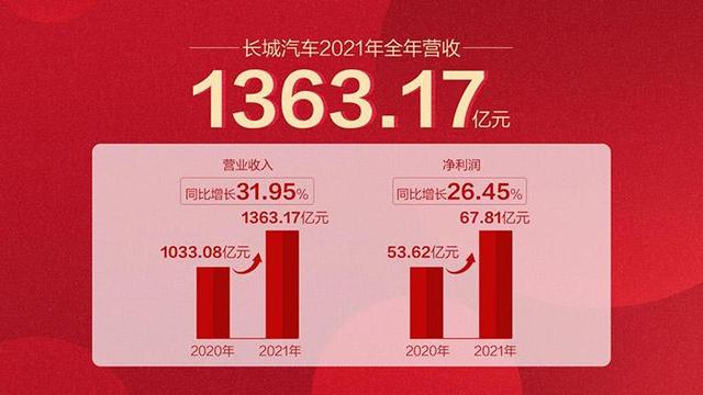 2021年蔚来、理想、小鹏三家造车新势力仍处于亏损状态。而在已经公布财报的车企中,长城汽车利润增幅最高,同比增长26.45%,全年营收为1363.17亿元,净利润为67.81亿元。虽然数额不低,但和特斯拉相比,仍存在量级上的差距。