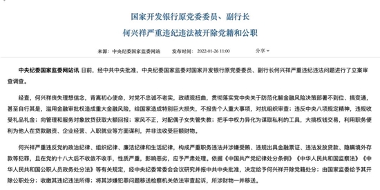 2021年2月,国家开发银行召开2021年党风廉政建设暨纪检监察工作会议,何兴祥还在现场通报了近期查处的典型违法违纪案件。
