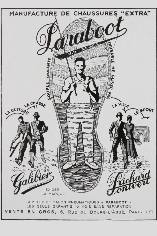 1927 年,Richard 注册了 Paraboot 这个名字。Para 是指亚马逊出口天然橡胶的港口;Boot 则代表 Richard 游历美国时所发现的‘橡胶靴子’。
