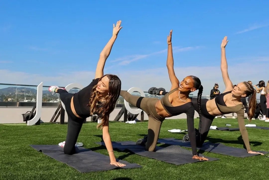 她在加州参加好友Jasmine tookes和Josephine skriver创立的运动品牌JoJa 的宣传活动。辣妈的微笑还是这么迷人,昔日维密天使同框比美了又~这是什么大长腿俱乐部,画面也太养眼了吧!