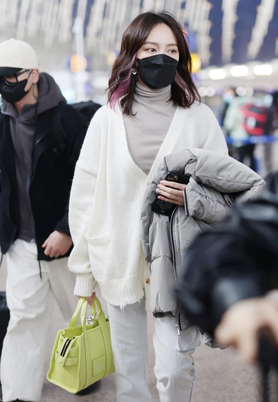 新年新气象,我们捯饬自己就是要从头开始。剪了锁骨发的孟佳更美啦,还加了挂耳染,好看。白色开衫内搭灰色高领衫温暖舒适,这只绿包拎得好,满是春天的调调。